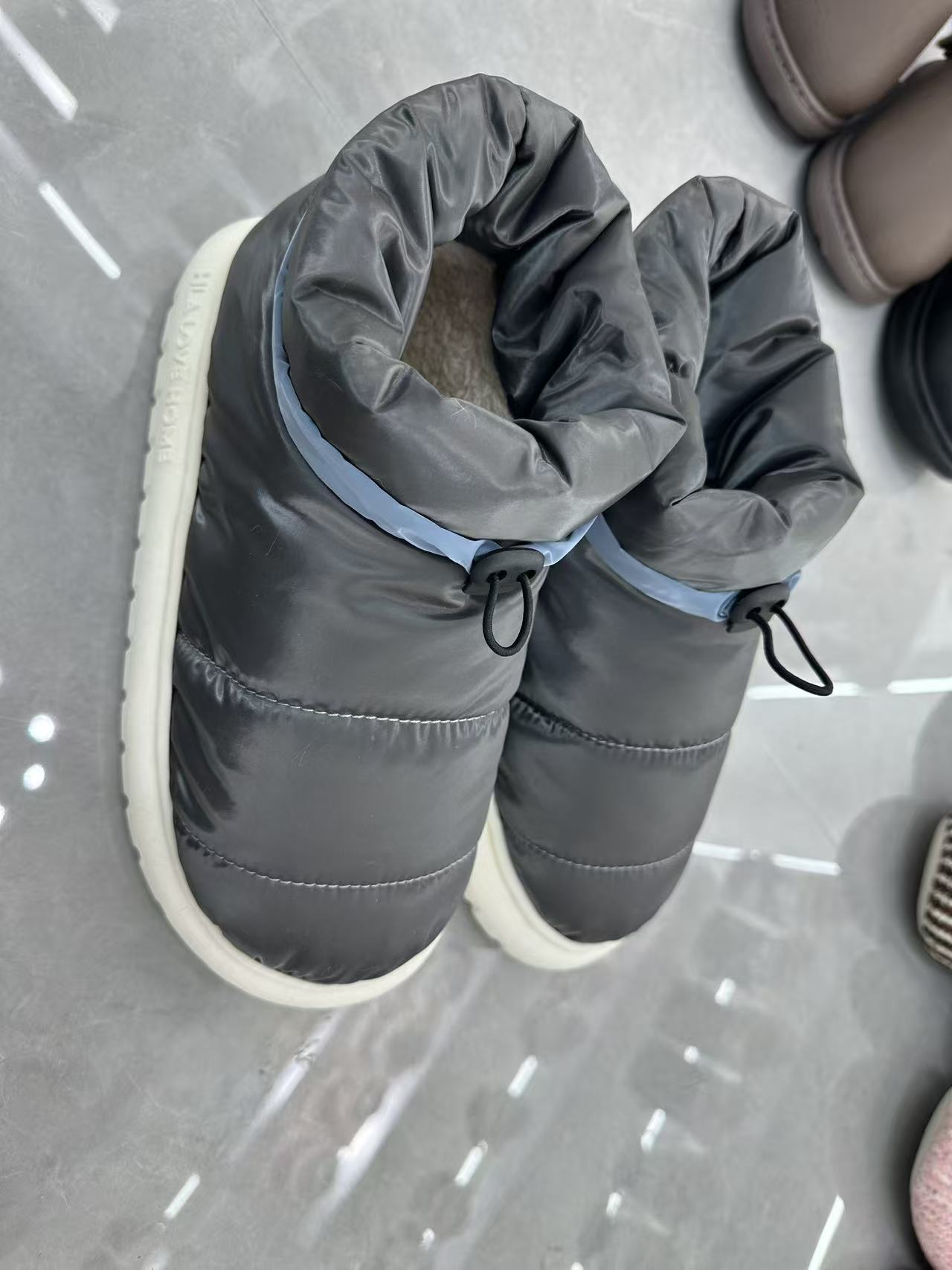Lesijia Shoesのダウン充填防水滑り止めコットンスリッパの最も優れた特徴は、防水生地のアッパーデザインです。冬に雨や雪が頻繁に降る中、荷物を取りに行ったり、ゴミ出しをしたりする際に、うっかり水たまりに足を踏み入れてしまっても、アッパーがしっかりと水をブロックしてくれます。内部には高品質のダウンがたっぷりと充填されており、ふわふわで保温性に優れており、瞬時に包み込まれるような暖かさを体感できます。 「実用性」を極限まで追求しました。 靴の履き口には特別にデザインされたドローストリングが施されています。優しく引くと開口部が締められ、冷気の侵入を防ぎ、ぴったりとフィットします。