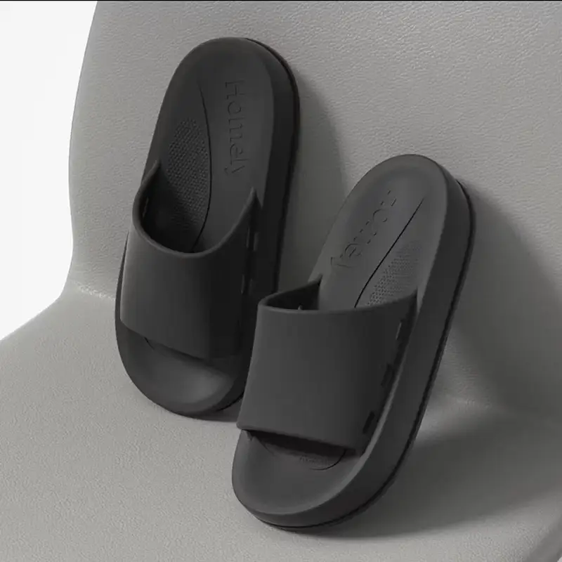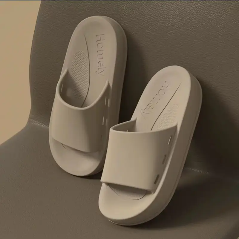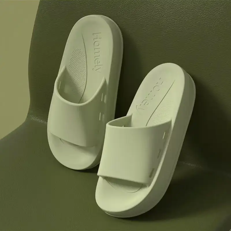 HOMELYシリーズのスリッパは軽量のEVA素材で作られており、重さを感じずに履きやすく、柔らかくサポート力があります。タイヤのような滑り止め加工を施し、地面をしっかりとグリップし滑りを防ぎます。シューズは控えめなアースカラーで、控えめでシンプルな品質を示しています。